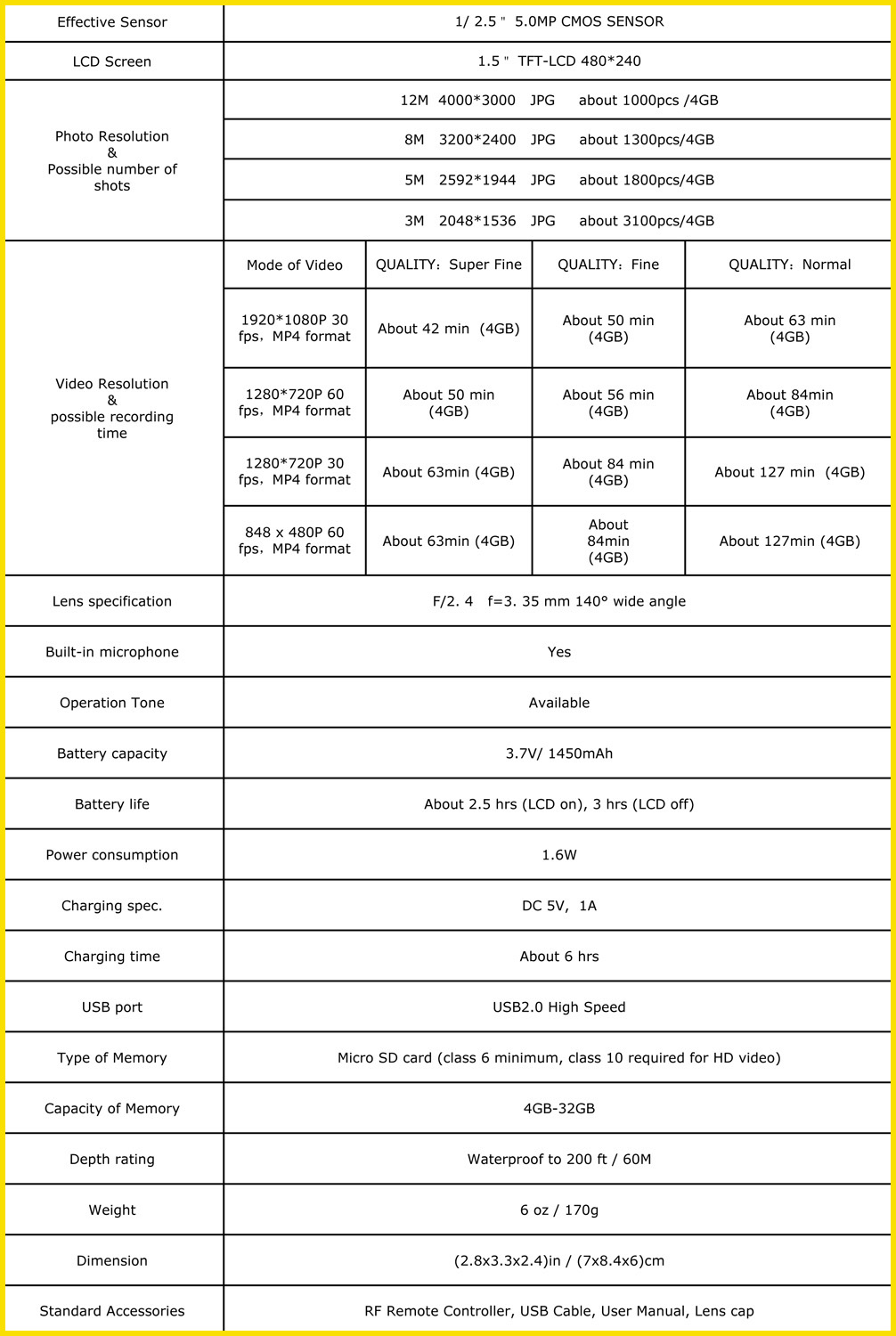 La caméra et le câble peuvent cependant être achetés séparément et à un coût raisonnable, qui vous permettra d’avoir un système de TV en circuit fermé. Pour le reste la CONNEX a des caractéristiques qui en font un excellent produit pour notre sport. En effet grâce à sa petite taille et son poids elle peut être installée sans problème sur nos fusils. Voici les principales caractéristiques techniques et à suivre l’essai à l’eau.